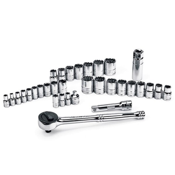 Mechanics Tool Set - 33 PcAssorted Dr. 6 & 12 Pt Standard Socket Set - SAE & Metric(1/4" & 3/8" Drive Std Sockets, Ratchet & Accessories)