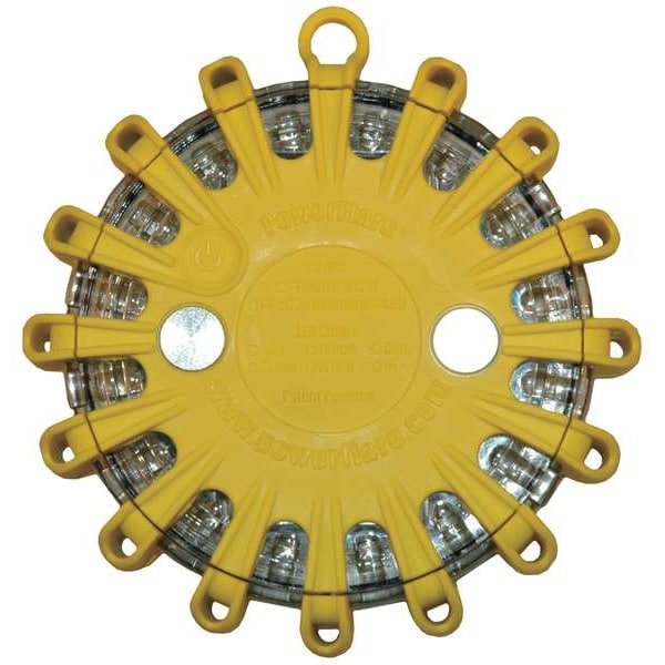 LED Road Flare, Amber LED, Yellow Shell, Polymer, 4 in Length, (1) Battery