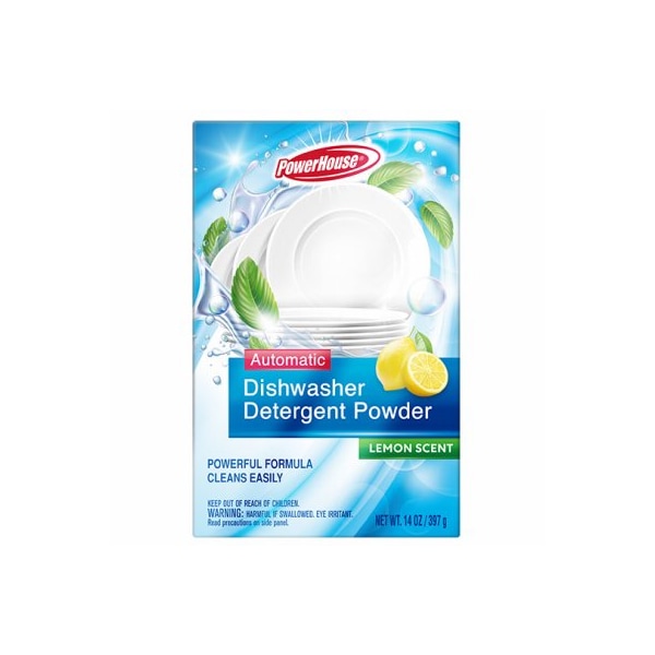 PowerHouse 14 oz. Automatic Dishwasher Detergent Powder Box Lemon Scent Powerful Formula Cleans Easily. Replaces TV#248704
