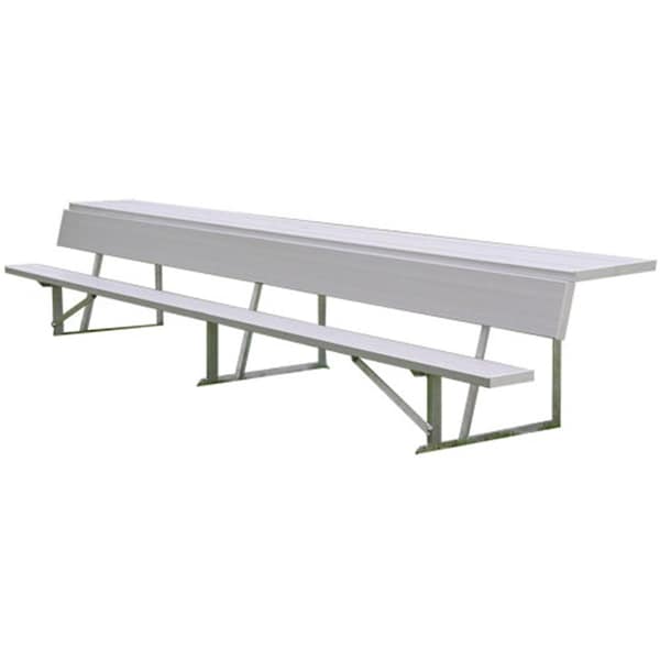 Finally players and coaches have a place for scorebooks gloves hats helmets etc. All aluminum with 2 in x 10 in anodized seat plank and backrest with 18 in wide shelf. Portable or surface mount requires drilling holes in base. Note: Benches are shipped knockdown and require assembly on site.