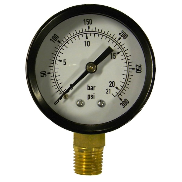 Pressure Gauge, 2", 300 PSI, 1/4" Bottom Co