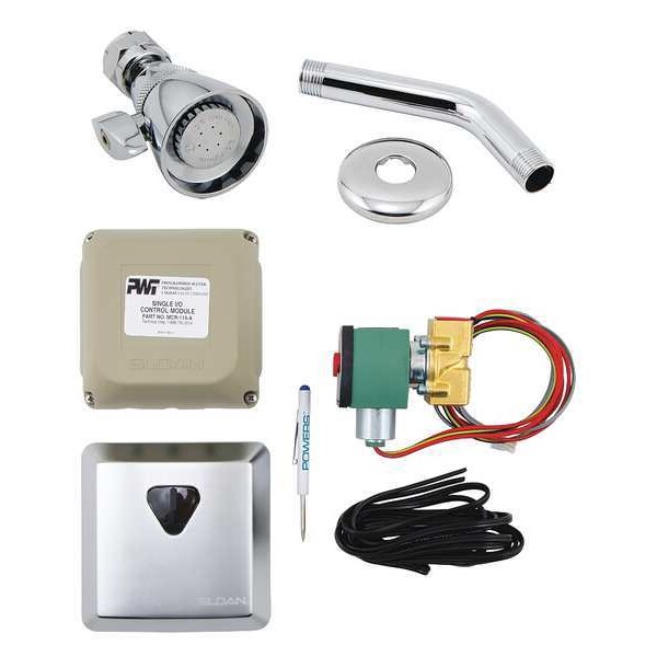 Sensor Showerhead Kit, ADA Compliance Yes, CEC Compliant, Connection Size 3/4 in, NPT, Face Shape Circle, Faucet Body Material Brass, Faucet Handle Type Pushbutton Sensor, Fixed Showerhead Flow Rate 2.5 gpm, Fixed Showerhead Width 1 3/4 in, Number of Handles 0, Powers, HydroGuard 447 Piezo Series, Shower Valve Type Thermostatic, Showerhead Function Single, Showerhead Shape Trumpet, Showerhead Spray Pattern Regular, Wall Mounted, Trim Finish Brushed Stainless Steel, Trim Plate Shape Rectangle