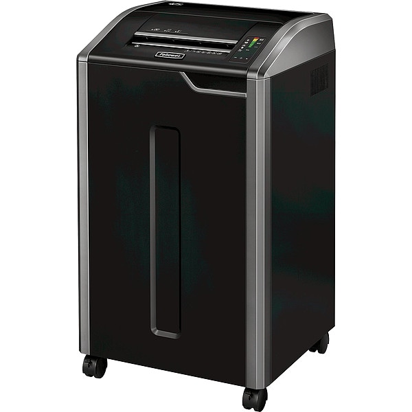 Shredder, Shreds CDs/DVDs, Credit Cards, Paper Clips, Staples, Cut Style Strip-Cut, Max. Shredding Capacity 38 Sheets, Shred Size 5.8 mm, Shredding Speed 20 fpm, Wastebasket Capacity 30 gal, Classification Commercial, Security Level 2, Duty Continuous, Throat Width 12 in, Color Black/Dark Silver, Depth 20 in, Height 37 1/2 in, Width 22 in, Standards BAA Compliant