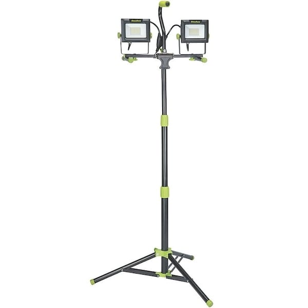PowerSmith Work Light with Tripod, 120 V, Frequency Rating 60 Hz, Wattage Rating 70 W, Lamp Type LED, Number of Lamps 2, Light Color Bright White, Lumens 8000 Lumens, Color Temperature 5000 K, Color Rendering Index CRI 80, IP Rating IP65, Cord Size 9 ft, Tripod Mounting, Aluminum, Dimensions 52 in H