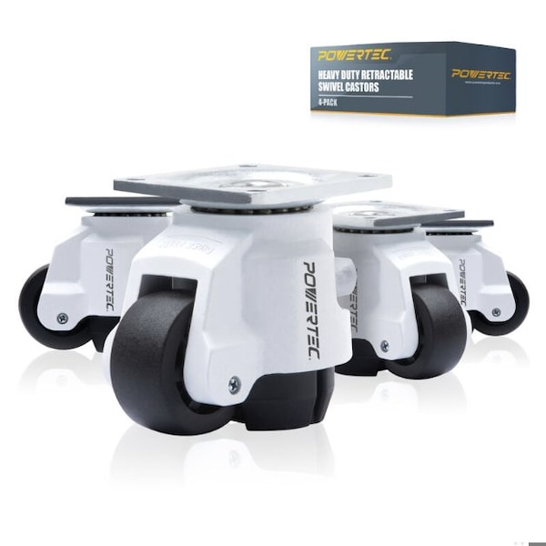 Introducing the 2-Inch Leveling Casters Set of 4 POWERTECThese heavy-duty casters are perfect for a wide range of applications, from moving heavy workbenches to woodworking machines. With their 360-degree rotatable swivel caster wheels and retractable leveling feet, these casters provide smooth, seamless movement and unmatched stability.Each retractable caster is made with steel frame and PP wheel. This makes them sturdy and tough, capable of supporting a total weight of up to 1750 lbs. The casters are also equipped with a ratchet lever for easy height adjustment, plus a reverse switch to move freely so you can easily customize them to your specific needs.This leveling caster set is the perfect solution for anyone who needs a versatile, easy-to-use, and durable set of casters. They're perfect for use in a wide range of industries, including manufacturing, healthcare, and retail. With their sleek design and high-quality construction, POWERTEC casters are sure to make a lasting impression.