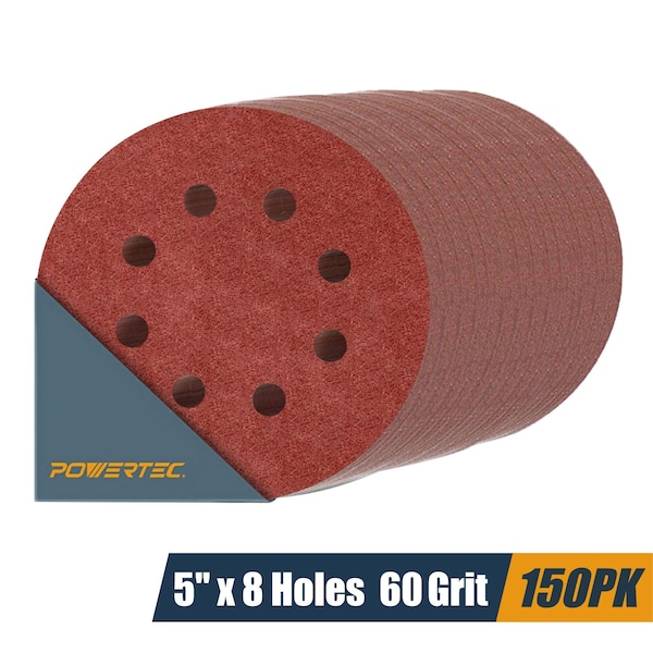 5 in. 8 Hole Hook and Loop Sanding Discs, Aluminum Oxide, 60 Grit, 150PK
