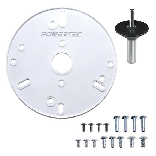 6-1/2 in. Universal Router Base Plate with Centering Pin & Cone. Predrilled Holes with Screws