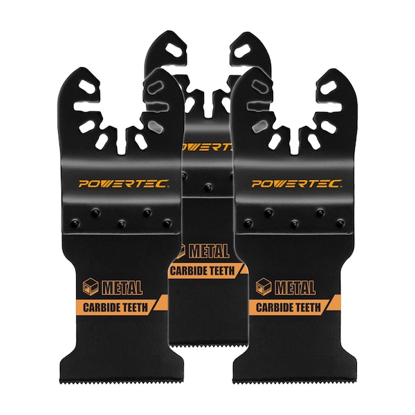 Experience precision, durability, and performance with the POWERTEC Oscillating Tool Blade Series., engineered to meet the diverse cutting demands of professionals and DIYers alike. Each set in this collection is purpose-built for specific applications from fine woodworking and general-purpose cutting to metal, cement board, and nail-embedded wood removal delivering consistent, high-quality results across every task. The lineup includes both bi-metal and carbide-tipped blades, combining flexibility with exceptional hardness to handle everything from soft woods and drywall to hardened steel and bolts. Each blade is crafted with precision-ground edges and treated with PVD coating for enhanced wear resistance, smoother cuts, and extended lifespan, even under heavy use. Whether you are flush-cutting trim, plunge-cutting into subflooring, or slicing through fasteners, these blades offer sharp, clean results with minimal vibration or heat buildup. Features. All models feature universal OIS fitment for compatibility with most major oscillating multi-tools, along with adapter plates for select Bosch and Dremel models. Designed to balance speed, accuracy, and strength, these blades are the ultimate solution for woodworking, metal fabrication, remodeling, and restoration projects. From the 14500 mixed bi-metal and carbide 5-piece set to the 14501 carbide metal-cutting pack, 14502 bi-metal fast wood-cutting assortment, and 14503 flush-cut blades for nail-embedded wood, the POWERTEC series delivers dependable cutting performance you can trust project after project, cut after cut.
