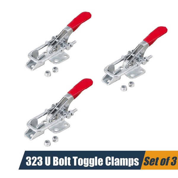 Toggle Clamp, 400 lbs Holding Capacity, 323 Adjustable U Bolt Latch w/Antislip Hand Grip, 3PK