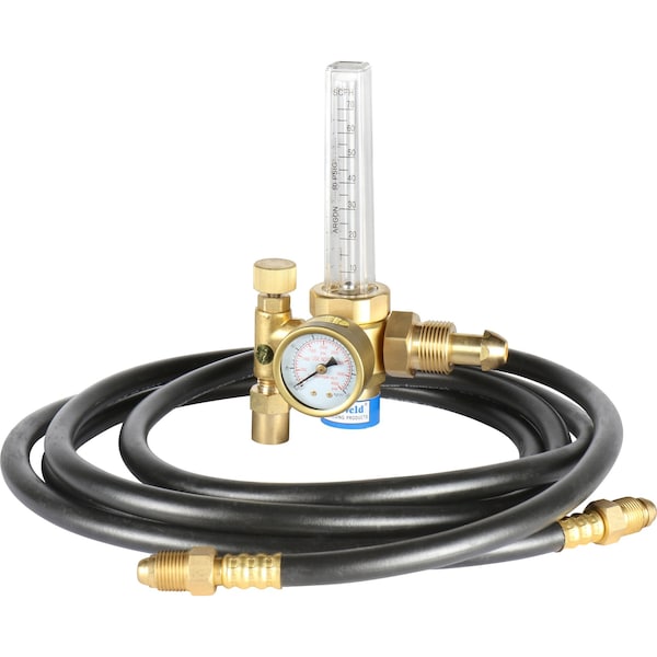 Single stage flowmeter; 0-60 SCFH; Preset at 50 PSIG; CGA-580 inlet connection; 5/8"-18 RH outlet connection; 1.5" gauge, 0-4000 PSI; Comes with 10' fitted argon hose