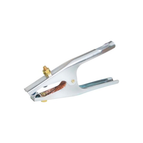 Powerweld 300 amp steel ground clamp. Heavy duty spring for maximum contact pressure. Sturdy jaws with braided copper strip for high conductivity. 5/16" stud connection for cable lug.