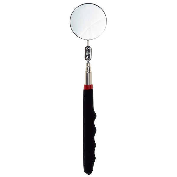 Telescoping 2 in. 50 mm round inspection mirror. Features a 9-1/2 in. 243 mm non-slip handle with comfort grip, telescoping to 28-3/4 in. 722 mm length. Includes multi-angle ball joint at mirror.