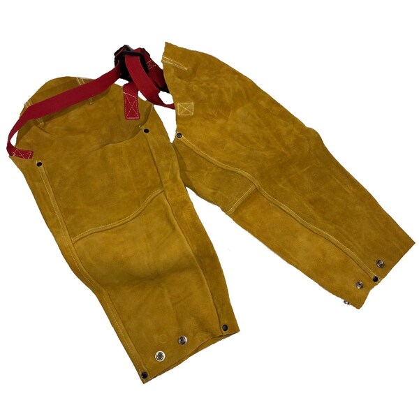 23" leather sleeves are held in place at the top of your shoulders with adjustable cross straps; Snap closure at the wrists