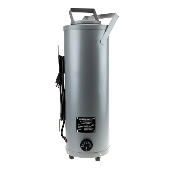 The PowerWeld portable electrode oven is built jobsite tough. Keeps electrodes moisture free in the shop or in the field. Easy access to electrodes with the rod lifter. Large adjustable dial thermostat on the front for convenience adjust temperature without removing your glove. Indicator light to show power is on. Specifications: Electrode Capacity: 20 lbs; Electrode Size: up to 18 in.; Input Supply: 110V, 250W, 50/60HZ; Temperature Range: 302 deg. F 150 deg. C max; Height: 25.6 in.; Outer Diameter: 8.0 in.; Inner Chamber Diameter: 5.7 in.; Inner Chamber Depth: 19.0 in.; Unit Weight: 13.7 lbs