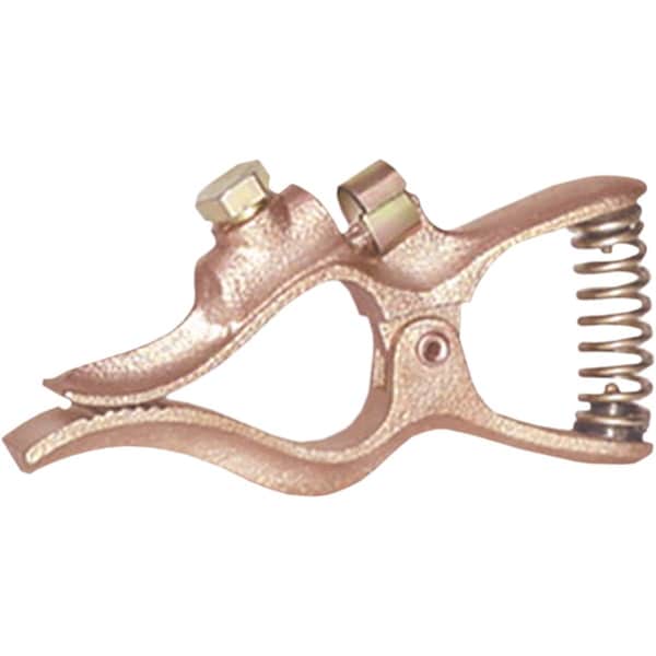 Manufactured from 98% copper alloy with forged brass conductors; Heavy duty fully insulated spring provides positive strength at jaws; Welding cable connects directly to clamp with locking screw