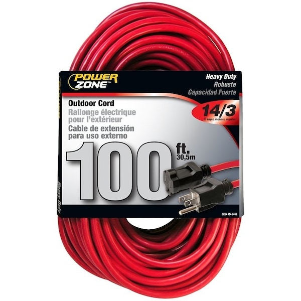 Extension Cord, 14 AWG, Outdoor, Red, 100 ft