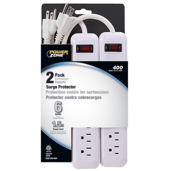 PowerZone 6-outlet 400 Joule Surge Protector with a 1.5 ft cord is ideal for small household electronics.