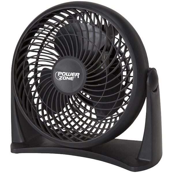 PowerZone Turbo Fan, 120 VAC, 0.7 A, Frequency Rating: 60 Hz, Wattage Rating: 84 W, 3 Speeds, Number of Blades: 3, Blade Diameter: 8 in, Control Type: Rotary, 3, Rotating Angle: 90 deg, Cord Length: 72 in, Plastic Blade, Housing Material: Plastic, Powder-Coated, Black, Table Mounting, Dimensions: 10-3/4 x 10-1/4 x 5-1/4 in, Plastic