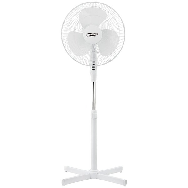 PowerZone FS-40E Oscillating Floor Fan, 3-Blade, 3-Speed, 120 V, White