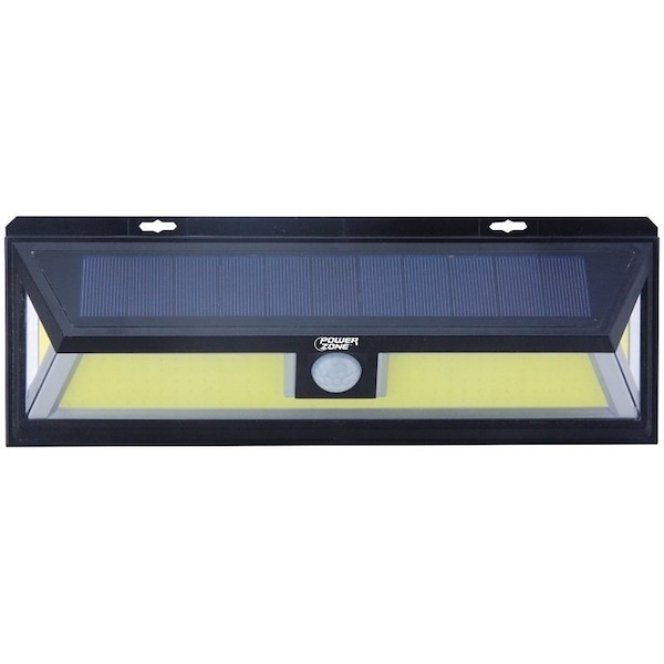 The PowerZone high 800/ low 250 lumens COB LED solar powered motion sensor wall light has a beam distance of 35 m. It operates dusk to dawn and the bright light turns on automatically when motion is detected. It's waterproof IP65 and has two modes: high/low. The sensor detects motion up to 32.8 feet away, easily mounts with screws and anchors. The lithium battery and screws are included.