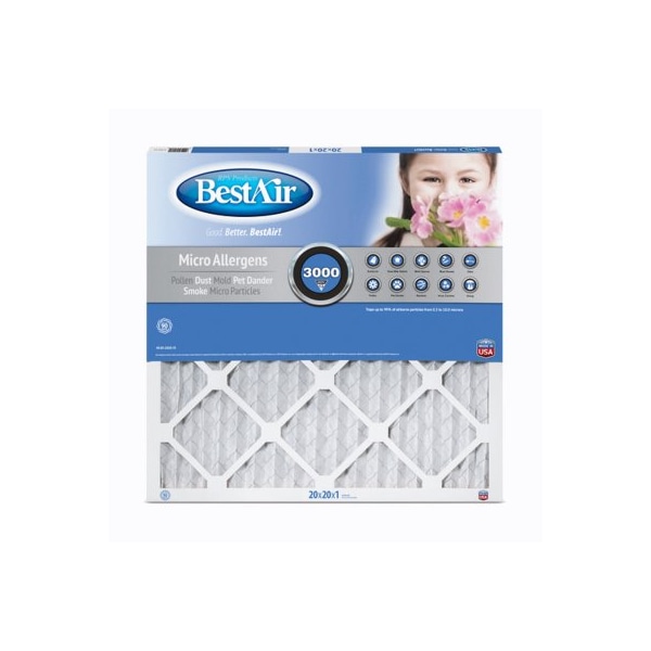 20x20x1 Best Air Pleated MERV Rating 13 Filter 90 Day Filter features efficient electrostatic filtration media that helps capture unwanted particles in your home including: Pollen Pet Dander Mold Spores Bacteria Microscopic Allergens and Smoke. This filter removes airborne particles delivering the air flow you need to create a cleaner fresher indoor environment.