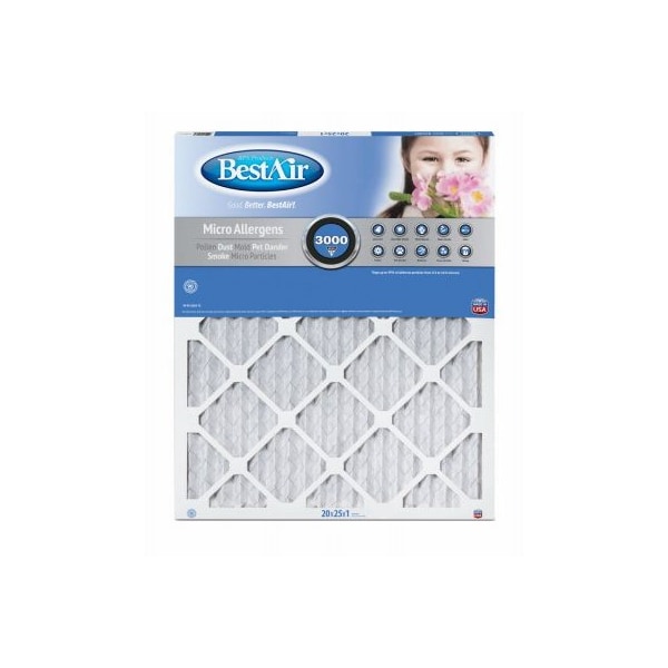 20x25x1 Best Air Pleated MERV Rating 13 Filter 90 Day Filter features efficient electrostatic filtration media that helps capture unwanted particles in your home including: Pollen Pet Dander Mold Spores Bacteria Microscopic Allergens and Smoke. This filter removes airborne particles delivering the air flow you need to create a cleaner fresher indoor environment.