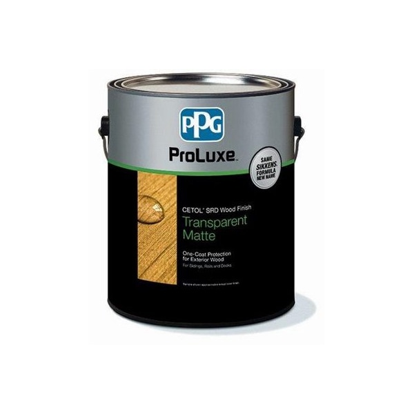 ProLuxe SRD Gallon Natural Oak Wood Finish Transparent Matte 550 VOC High Solids Alkyd Oil Use On Horizontal & Vertical Surfaces Trans Oxide Pigments Amplify Depth Of Color Clarity & UV Protection Excellent Penetration For Lasting Protection & Color Retention Water Repellent & Mildew Resistant Recommended For Siding Rails Decks Siding Shakes & Shingles Fences Logs Docks & Outdoor Furniture 1 Coat Application Not Available In VOC Restricted Areas Order SRD RE.