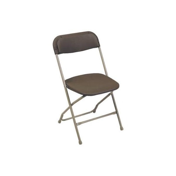 Brown, Plastic Folding Chair, With Neutral Metal Frame, Seam Welded, 16 Gauge, 18 Gauge 34 Tubular Steel Frame, Specially Contoured Seat, Back, Making It Very Comfortable, Can Interlock, Allowing You To Stack Up To 65 Chairs