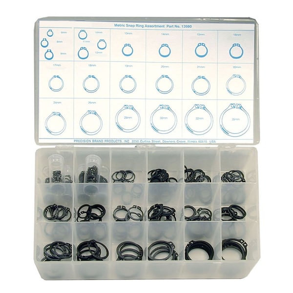 External Retaining Ring Assortment, Spring Steel, 300 Pieces
