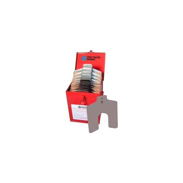 Assortment contains 4 each of the following thicknesses: 0.001", 0.002", 0.003" ,0.004", 0.005", 0.010", 0.015", 0.020", 0.025", 0.050", 0.075", 0.100", and 0.125". Made from a 300 series stainless steel that resists rust and corrosion. Size e - 6" x 6". Slot size - 2". Packaged in a durable metal box. Precision brand slotted shim is the best way to solve alignment and leveling problems on motors, pumps, generators, and other plant machinery. Slotted shims are economical, safe, and accurate. Reduce labor costs by eliminating hand cutting and reduce downtime by eliminating shim preparation.