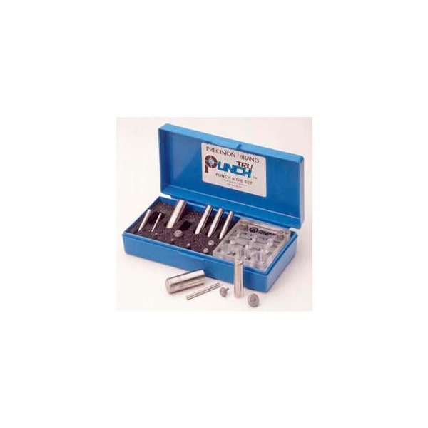 Self-centering punch and die set makes perfect, custom washers, shims, and gaskets in seconds. Nine punch sizes: 1/8, 3/16, 1/4, 5/16, 3/8, 7/16, 1/2, 5/8, and 3/4". Eight i.d. Pilot sizes: 1/8, 3/16, 1/4, 5/16, 3/8, 7/16, 1/2, and 5/8". Cuts steel, brass, copper, aluminum, rubber, and plastic effortlessly up to 0.025" thick. Cuts stainless steel and blue tempered shim up to 0.010" thick. Precision brand trupunch punch & die set makes perfect, custom washers, shims, and gaskets in seconds by using its exclusive, patented punch, pilot, and pin system. No guess work is needed to center the i.d. And there is no need to scribe center lines. Material waste is reduced by creating a perfect shim every time. Packaged in a durable plastic case.