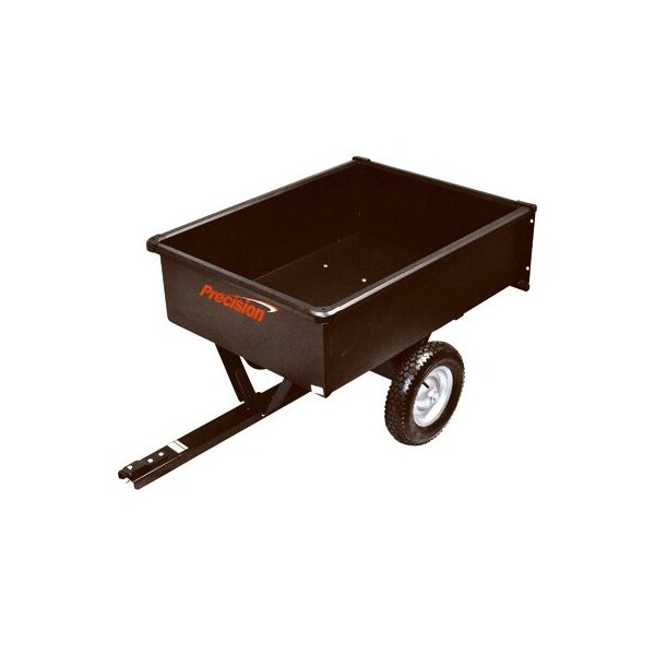 10 CUFT Dump Cart, 750 LB Capacity, Steel Tow Bar Undercarriage Frame, 18 Gauge Steel, Welded Powder Coated For Durability, Removal Tail Gate, 16 Pneumatic Tires, Yellow Dichromate Finished Hardware, Clevi Hitch With Pin, Easy Dump Release Handle, 1 Piece Welded Body