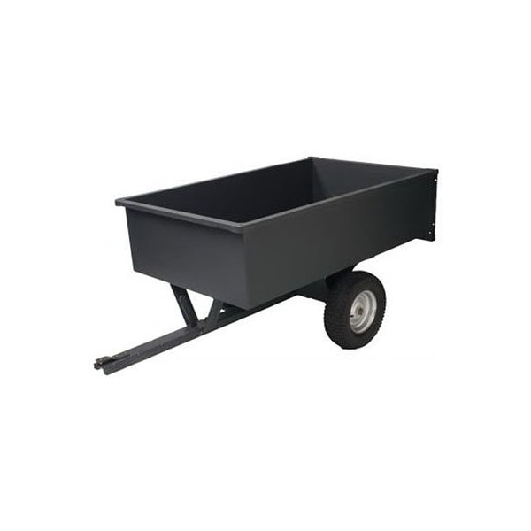 17 CUFT, Steel Dump Cart, 1500 LB Capacity, Steel Tow Bar Undercarriage, 6 Gauge Steel, Welded Powder Coated For Durability, Removable Tail Gate, 16 Pneumatic Tires, Yellow Dichromate Finished, Clevis Hitch With Pin, Easy Dump Release Handle, 30 Minute Assembly