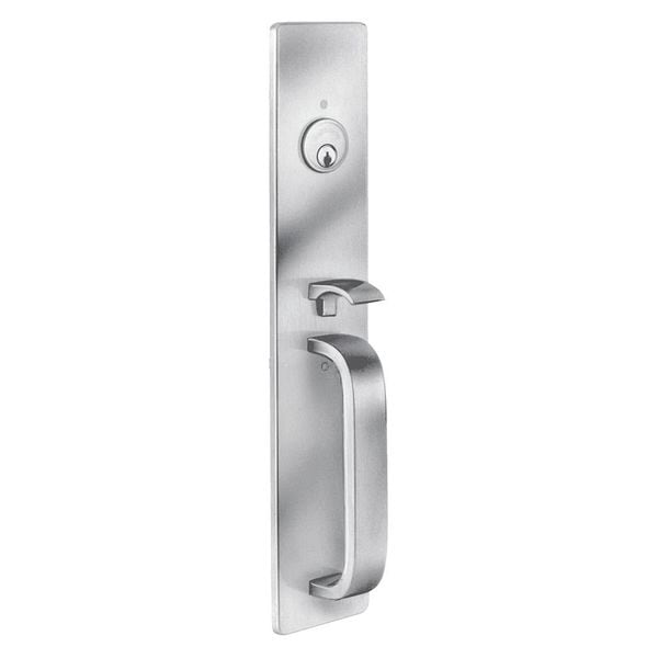Thumbpiece Pull, Mechanical Exit Device Trim, Heavy Duty, Door Handing Field Reversible, 1700 Series, Fire Rated No, Color Silver, Satin Stainless Steel Finish, Max. Door Height 96 in, Max. Door Width 48 in, For Door Thickness 1 3/4 in, Application Commercial, Government, Healthcare, Educational, Retail, Overall Length 15 in, Overall Width 2 3/4 in, Grade 1, Standards ANSI/BHMA A156.3, UBC 7-2, ADA Compliant Yes