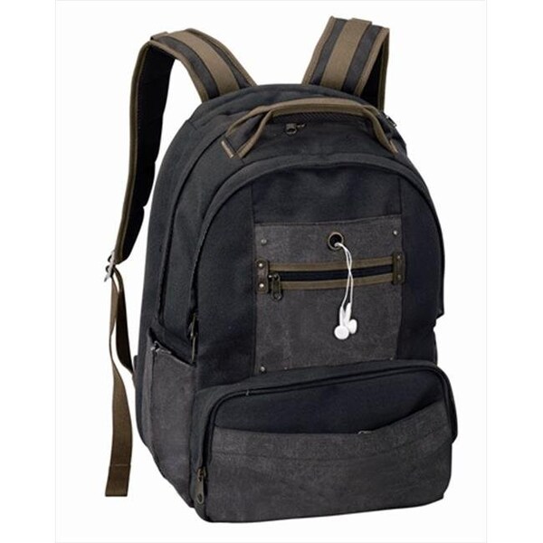 Carry the way to a greener planet on your back with this great pack. Constructed using environmentally friendly, 16 oz 100% cotton canvas and webbing, with 900D polyester. it's super-stylish and ultra-functional. The outside features an iPod pocket lined in corduroy with a port for headphones, dual side pockets for a water bottle and phone, a gusseted front zippered pocket with full organizer for business and personal accessories, and fully padded, zip-around back compartment for easy access to your laptop. The spacious main compartment is also padded for a laptop up to 17" and lined with super-soft corduroy for longer commutes and has dual open pockets for cables. The breathable, plush padded back and shoulder straps provide the utmost in comfort on the go.