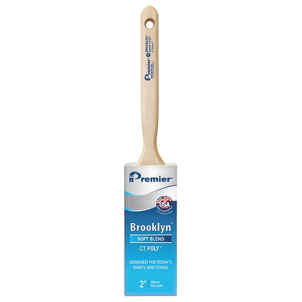 Paint Brush, Brush Style Flat Sash, Filament Type Synthetic, Filament Material Polyester, Brush Size 2 in, Bristle Thickness 3/8 in, Bristle Length 2 11/16 in, Bristle Stiffness Soft, Handle Type Flat Sash, Basic Handle Material Wood, For Paint or Coating Type Paints, Polyurethane Coatings, Primers, Stains, Surface Material All Purpose, For Paint Base Type Oil, Water, Surface Texture Smooth, Application Interior and Exterior Painting Projects, Bristle Width 2 in, Brush Length 2 3/4 in