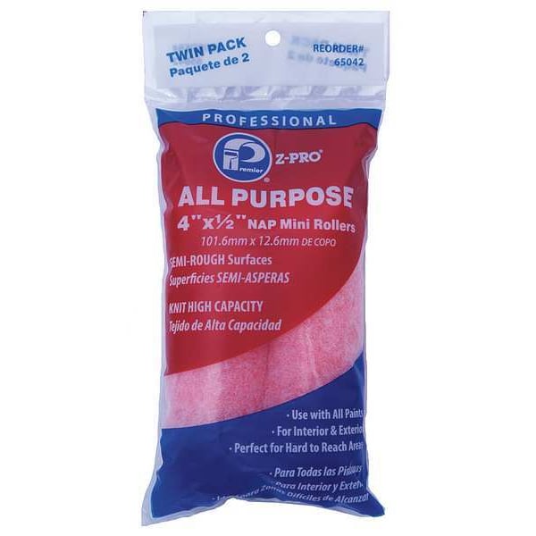 Mini Paint Roller, Cover Type Mini, Surface Texture Semi-Rough, Compatible Roller Frame Style Wire, 4 in Overall Length, 1/2 in Nap Size, Surface Material Brick, Concrete, Paint Type All Paints, Core Diameter 5/8 in, Cover Material Polyester, Core Material Plastic, Package Quantity 2