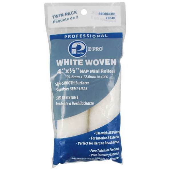 Mini Paint Roller, Cover Type Mini, Surface Texture Semi-Rough, Compatible Roller Frame Style Wire, 4 in Overall Length, 1/2 in Nap Size, Surface Material Brick, Concrete, Paint Type All Paints, Core Diameter 5/8 in, Cover Material Woven Fabric, Core Material Plastic, Package Quantity 2