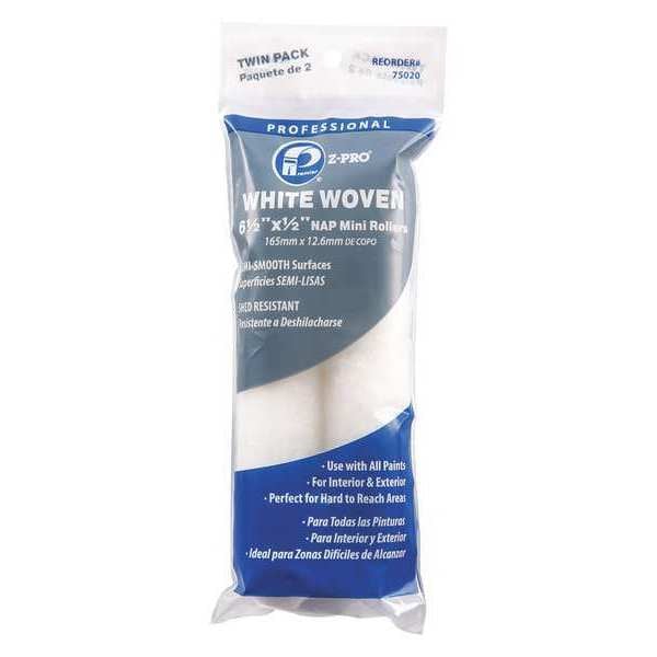 Mini Paint Rollers, Cover Type Standard, Surface Texture Semi-Smooth, Compatible Roller Frame Style Wire, 6 1/2 in Overall Length, 1/2 in Nap Size, Surface Material Brick, Concrete, Paint Type All Paints, Core Diameter 5/8 in, Cover Material Woven Fabric, Core Material Polypropylene, Package Quantity 2