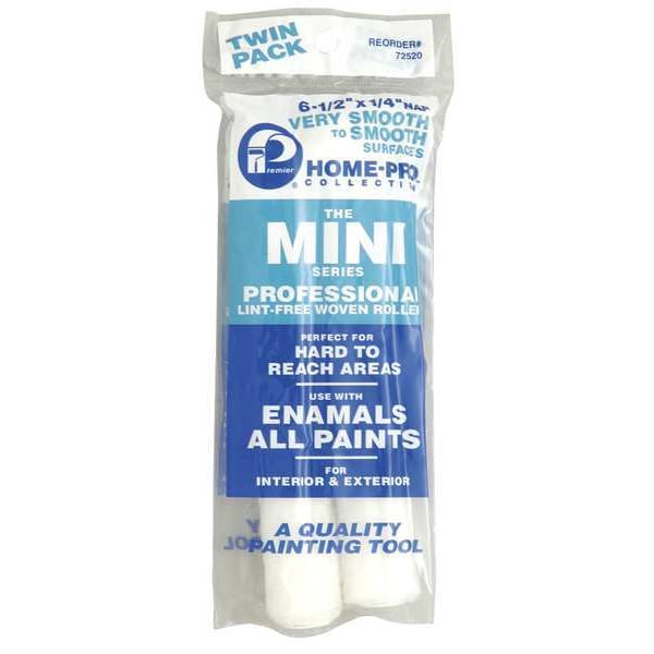 Mini Paint Roller Cover, Cover Type Standard, Surface Texture Smooth, Compatible Roller Frame Style Wire, 6 1/2 in Overall Length, 1/4 in Nap Size, Surface Material Drywall, Paint Type Oil Based Paints, Water Based Paints, Core Diameter 5/8 in, Cover Material Woven Fabric, Core Material Plastic, Package Quantity 2