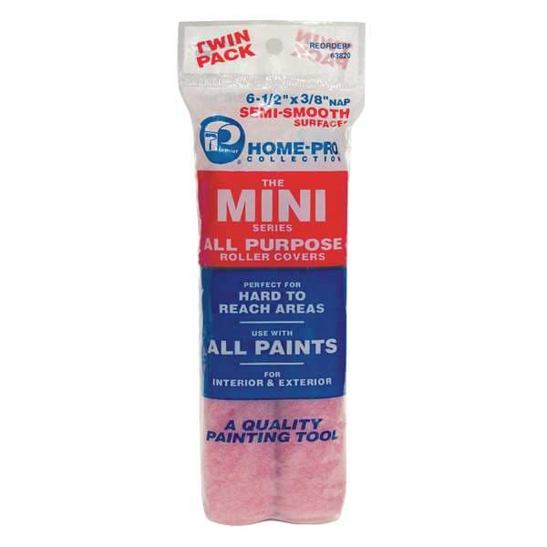 Mini Paint Roller Cover, Cover Type Standard, Surface Texture Semi-Smooth, Compatible Roller Frame Style Wire, 6 1/2 in Overall Length, 3/8 in Nap Size, Surface Material Drywall, Paint Type Oil Based Paints, Water Based Paints, Core Diameter 5/8 in, Cover Material Polyester, Core Material Plastic, Package Quantity 2