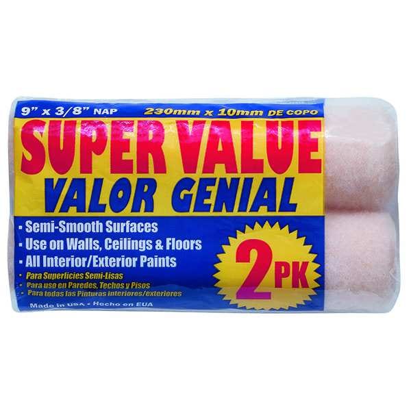 Paint Roller Cover, Cover Type Standard, Surface Texture Semi-Smooth, Compatible Roller Frame Style Cage, 9 in Overall Length, 3/8 in Nap Size, Surface Material Drywall, Paint Type Oil Based Paints, Water Based Paints, Core Diameter 1 1/2 in, Cover Material Polyester, Core Material Polypropylene, For Use With Ceilings, Floors, Walls, Package Quantity 2