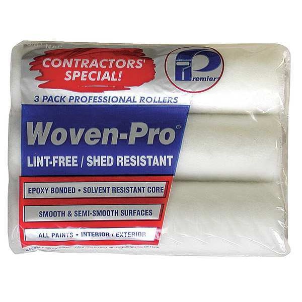 Paint Roller Cover, Cover Type Standard, Surface Texture Semi-Smooth, Compatible Roller Frame Style Cage, 9 in Overall Length, 3/8 in Nap Size, Surface Material Drywall, Paint Type All Paints, Enamels, Varnishes, Core Diameter 1 1/2 in, Cover Material Woven Fabric, Core Material Polypropylene, Package Quantity 3