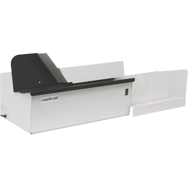 Electric letter opener is designed for high-speed processing of large mail volume. Ideal for large businesses and mailrooms. Letter opener automatically feeds, opens, and collects a stack of envelopes and accepts a 6" tall stack of envelopes. Operation speed is up to 17,500 envelopes an hour. Adjustable width accommodates different envelope sizes and types. Electric letter opener opens envelopes up to 1/4" thick. Receiving tray is removable to save space when not in use.