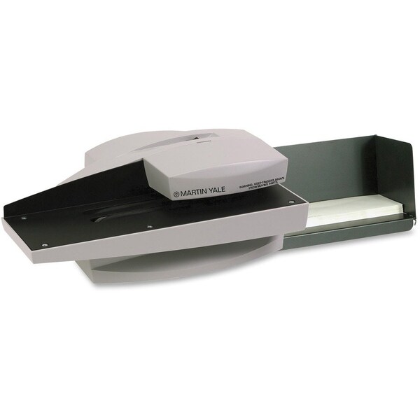Electric letter opener is ideal for mid-size to large businesses with an automatic-feed, high-volume capacity and hands-free operation. The letter opener automatically feeds and opens a 1-3/4" tall stack of standard-size business envelopes at a speed of up to 7,000 envelopes an hour. Simply put the envelopes into position and turn on the machine. Blades are fully enclosed to protect fingers. Letter catch tray folds for easy storage. Electric letter opener also offers nonskid feet to keep the machine in place.