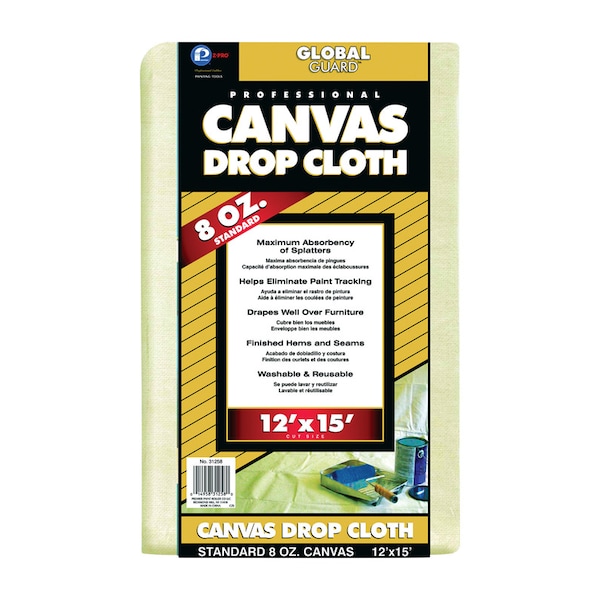 Premier Global Guard medium weight canvas drop cloth to protect surfaces from paint, stain and surface damage. Used to protect surfaces from spills, dust, and debris. Finished hems and seams.