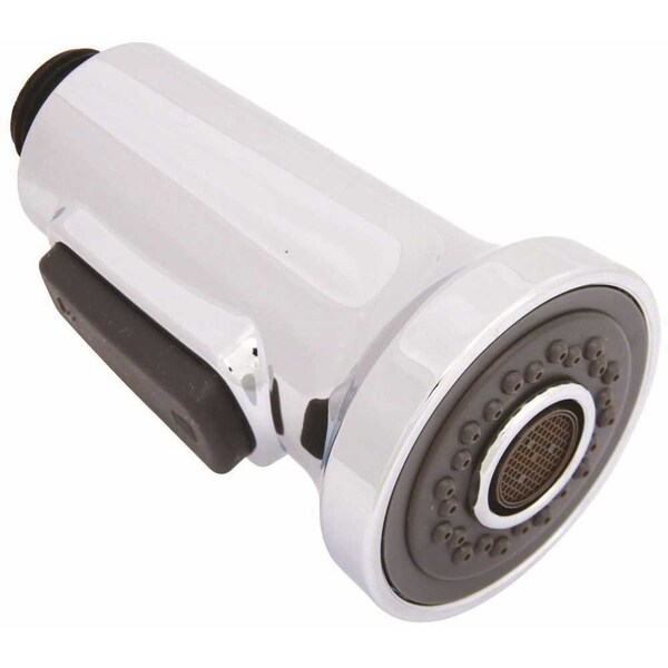 This pull-down spray head has a flow rate of 1.8 GPM. It has a push button control to change the flow from spray to stream. This spray head has a chrome finish.Includes 1 spray headFits: Essen 120333LFFlow rate: 1.8 GPMChrome finish