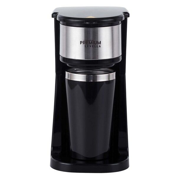 With an easy one-touch operation button and neon indicator light and auto shut-off, it's never been eaiser to make a delicious cup of coffee. Make your coffee two ways, brew your favorite coffee grounds using the permanent mesh filter or use a coffee pod. An included 14.2 ounce travel mug with two layers of thermo stainless steel plastic body and air tight lid keeps your coffee hot and is perfect for the trip to the office, gym, or running errands. 700 Watts of power heats your coffee to a temperature of 173 degrees Fahrenheit. Perfect for the office, small apartments and dorm rooms.