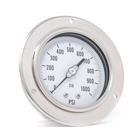 PIC Gauges 2.5" All Stainless Pressure Gauge, 1/4" NPT, 0/1500 PSI, Glycerine Filled, LM, 301L-254N