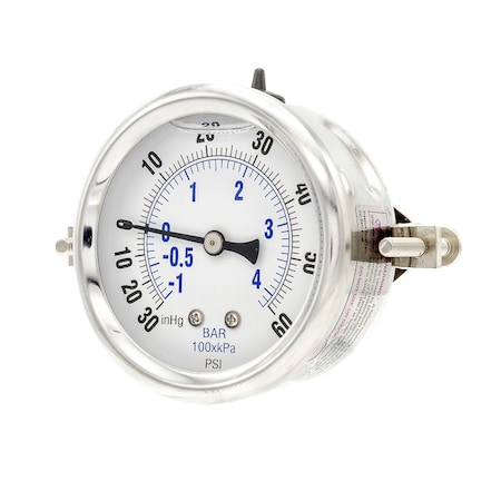 Panel-Mount Compound Gauge, 30 to 0 to 600 psi, 4 in Dial, 1/4 in NPT, Lower Back Location